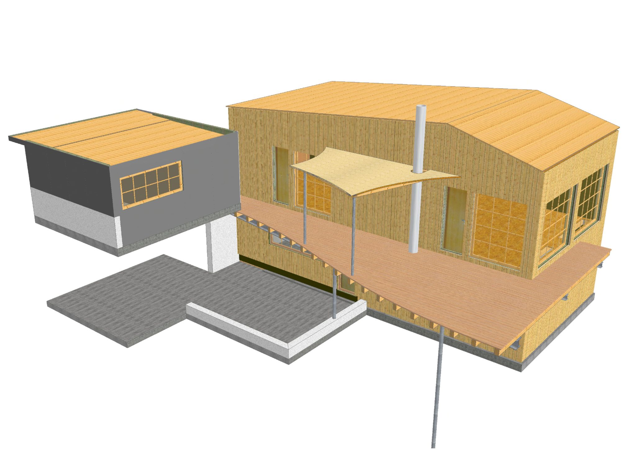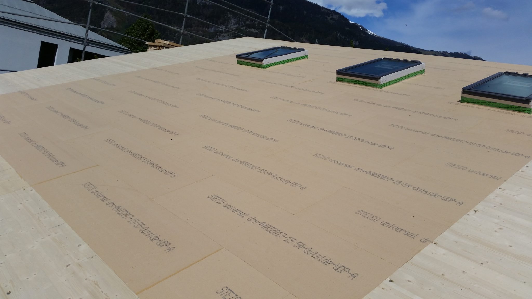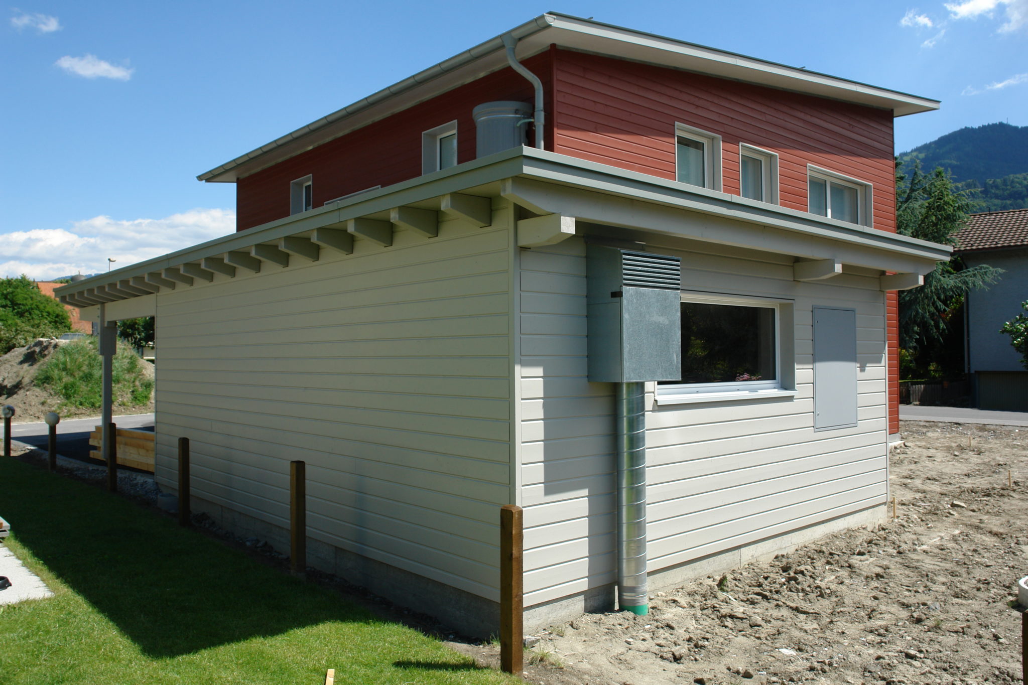 Die Wandelemente wurden aussen mit verputzbaren Holzfaserplatten belegt.