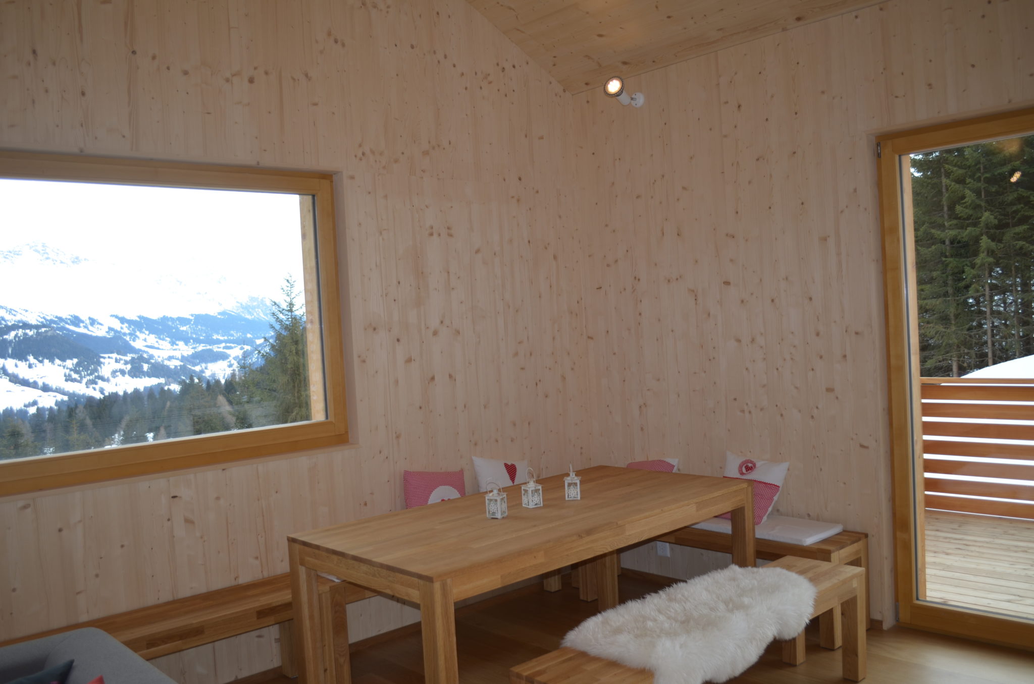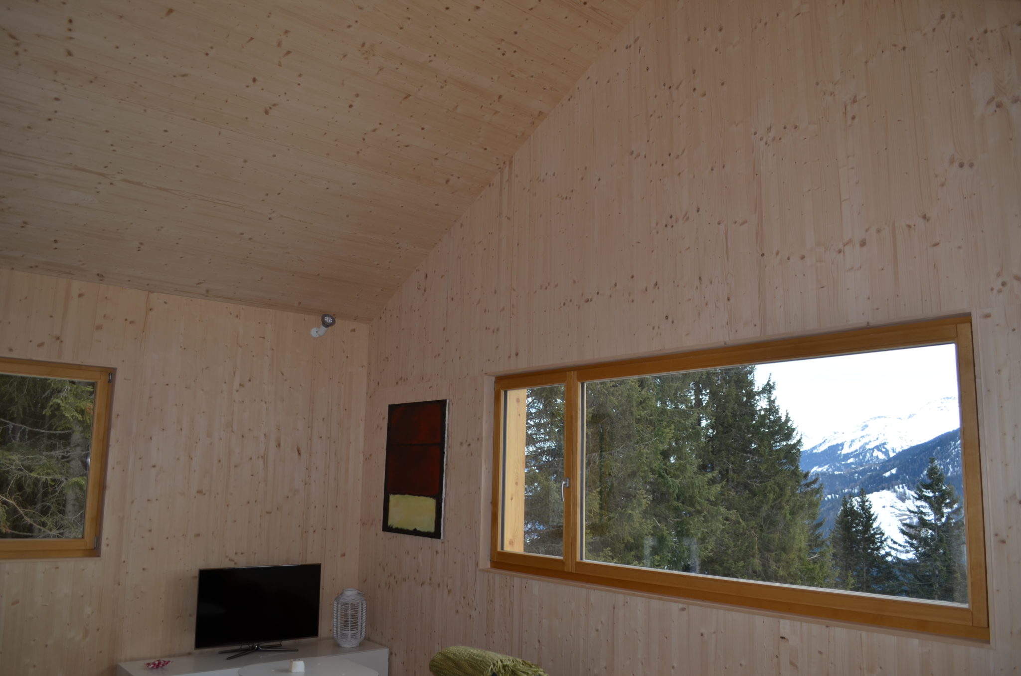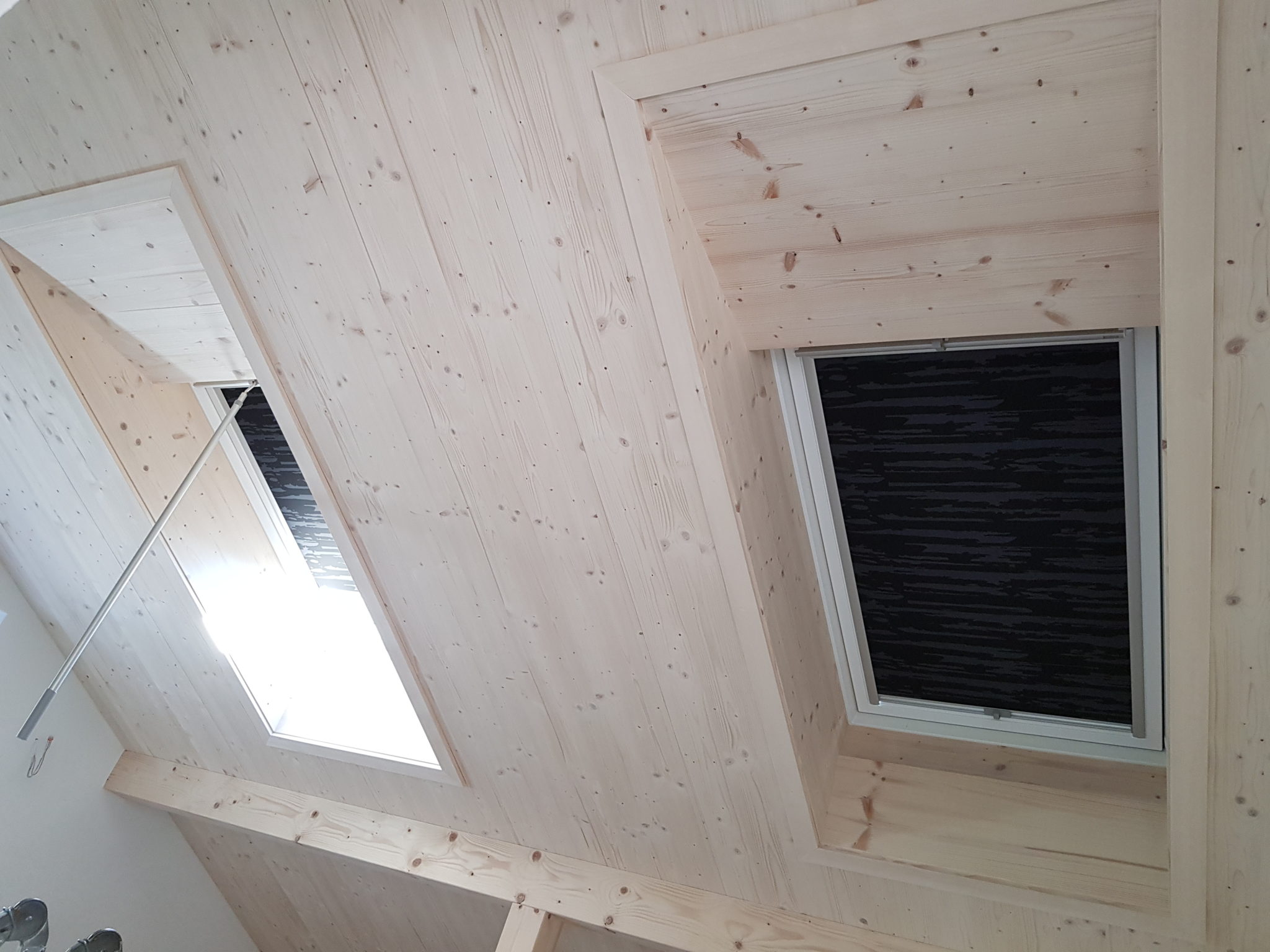 Die Dachelemente haben Raumseitig eine sichtbare Fichtenoberfläche.