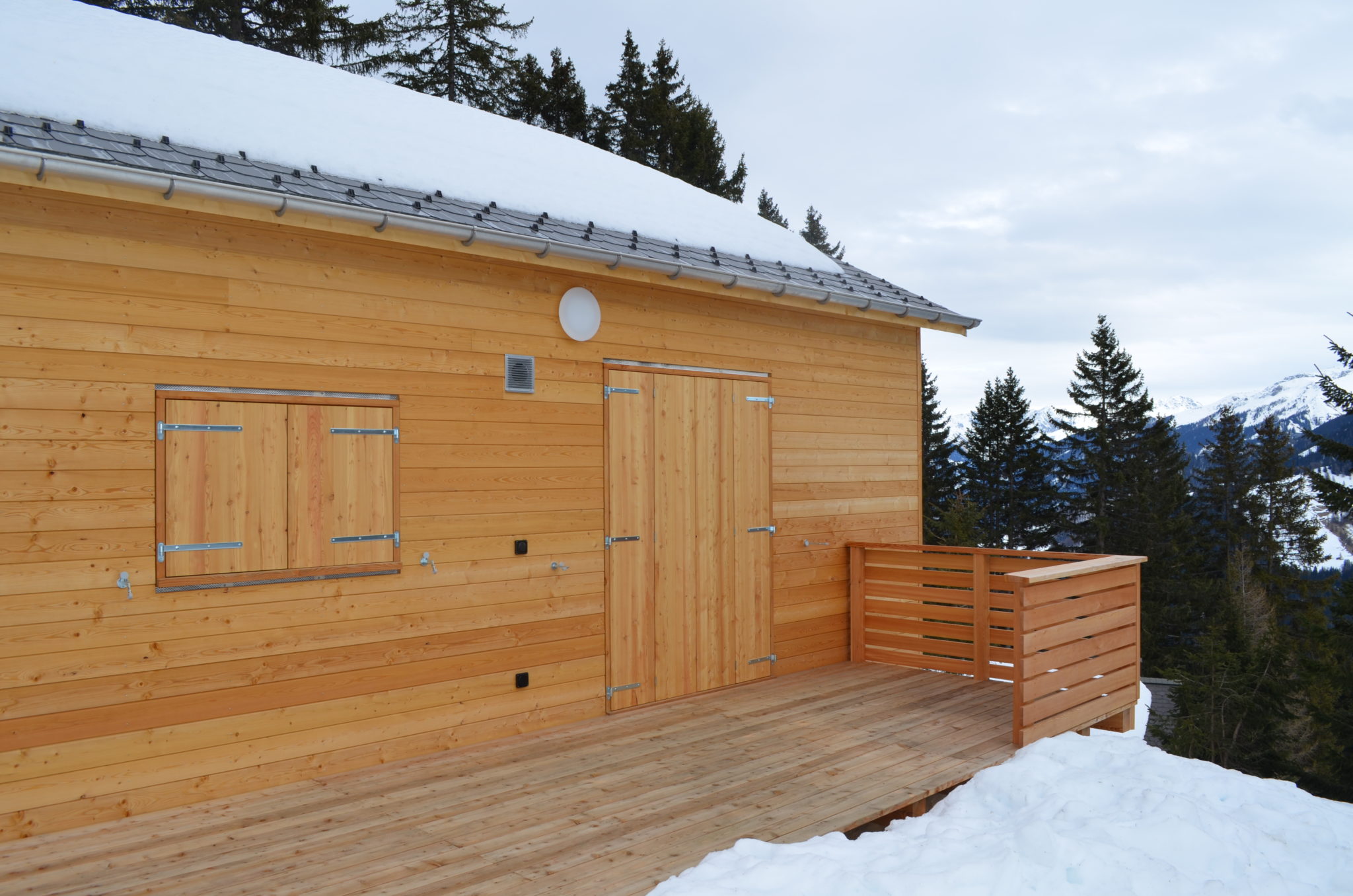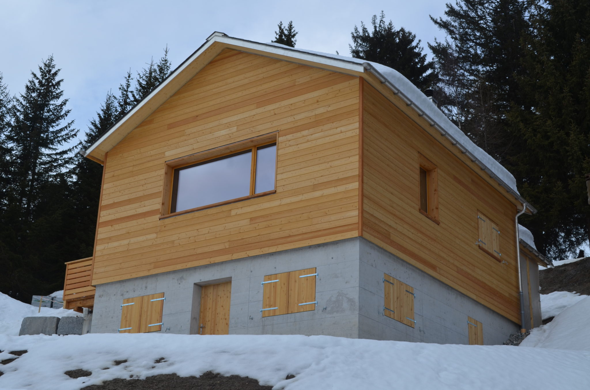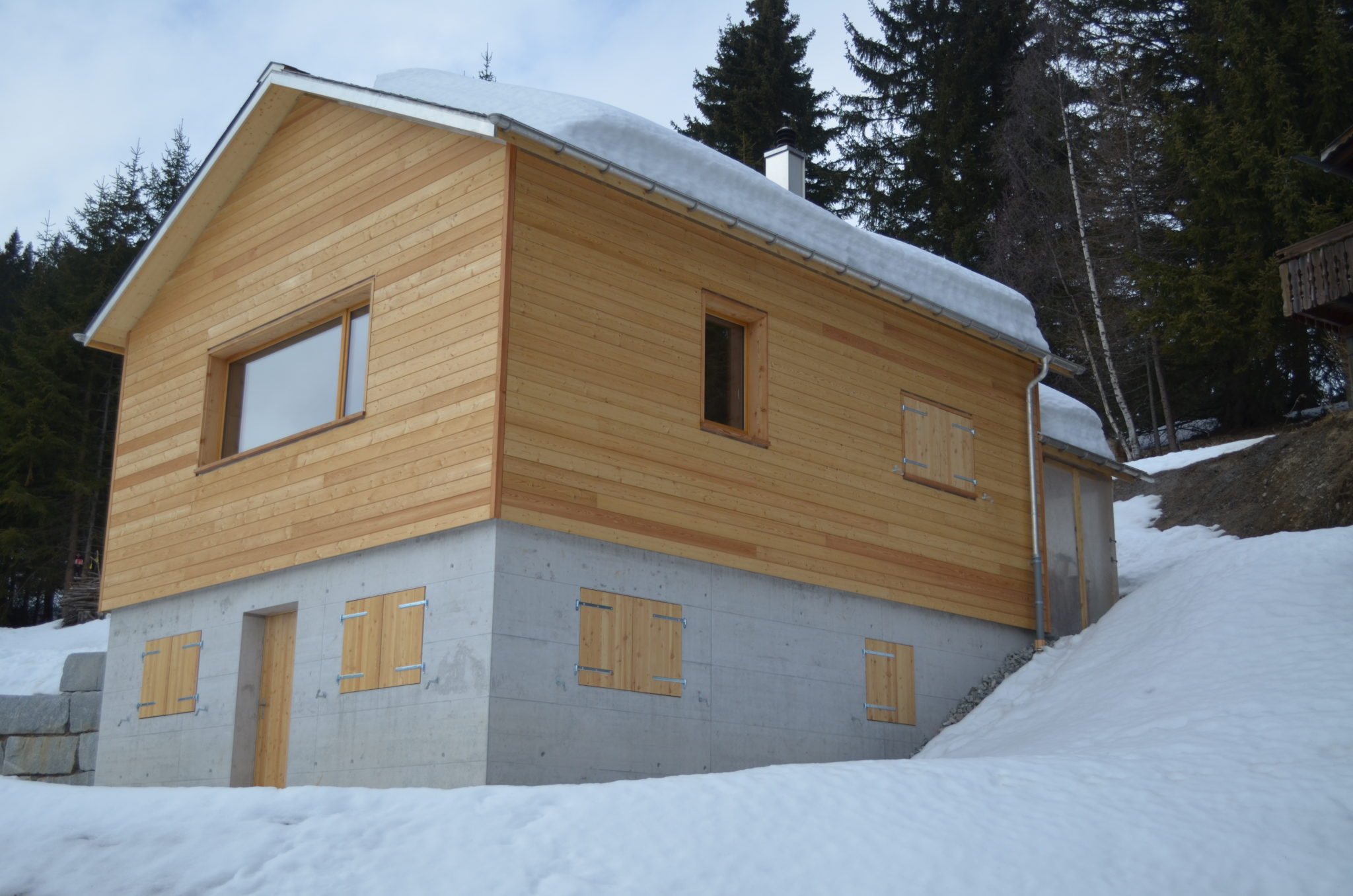 Holzfensterläden wurden in Lärchenholz ausgeführt.